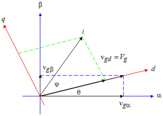 Traditionally, PLL is an interesting component control of power electronic converters in grid-connected applications. It is used as a means to retrieve phase and frequency information, which allows for controlling the utility phase angle. The inputs of the PLL design are the three-phase voltages measured on the grid side and the output is the estimated tracked phase angle. The PLL design is realized in synchronous reference frame, which signifies that a Park transformation is required. The phase-locking of this system is accomplished through controlling the q-axis voltage to zero. Commonly, a PI controller is utilized for this objective. By integrating the sum among the PI controller output and the reference frequency, the phase angle is achieved [58].
