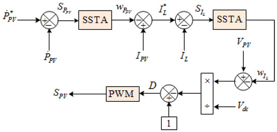 The DC–DC boost converter is widely used for solar PV units, in which it amplifies and regulates the PV panel voltage at a specified level along with the extraction of maximum power. Figure 12 shows the structure of the MPPT control law by simplified super-twisting SSTA algorithm.