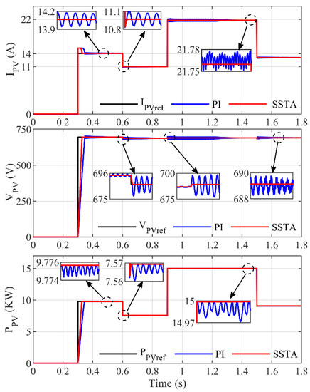 8.1. Proposed MPPT–SSTA Voltage and Current Control Loops