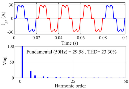 Reducing the total harmonic distortion (THD) is one of the important issues of injecting energy into the grid from solar panels. The SAPF, which is implemented using two-level inverters, is well-recognized for its efficiency in eliminating harmonics and compensating reactive power [23]. This technique is primarily used to compensate for medium power range non-linear loads because of the limitations of semiconductor devices. However, high switching frequencies of the two-level inverter can result in problems when dealing with increased non-linear load power. Inverters’ static switches have high switch currents, and to reduce switched currents at a given power, multiple switches of the inverter may be necessary, leading to an increase in switch voltage [24,25]. To overcome this drawback, one possible solution is to interface the PV system to the utility grid via a multilevel inverter, since it offers many advantages such as lower harmonics rate, better electromagnetic compatibility, and lower switching losses [26,27]. The neutral-point-clamped (NPC) inverter topology is extensively used in medium- and high-power applications for compensating reactive power and eliminating harmonics in electrical networks, as described in reference [28,29]. These inverters offer numerous advantages such as reduced harmonics in the output voltages, decreased source current harmonics, lower switching losses, reduced voltage stress on power semiconductors, and the ability to overcome issues associated with SAPF based on two-level inverters. The performance of SAPF based on three-level NPC inverters is determined by the selected strategies for generating reference harmonic currents with good tracking quality; dynamic, robust, and stable injected currents; DC bus voltage regulation; and the precise generation of gate-switching pulses. The impact of switching frequency and gate-switching pulses on the performance of three-level NPC inverters has been explored by several researchers [30,31].