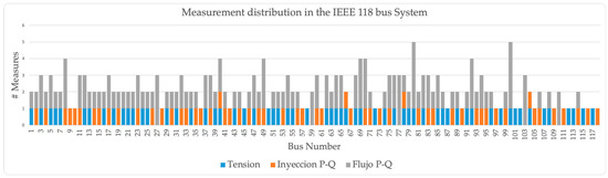 Figure 15 shows the distribution of the measurements in each bar of the system and that will be used both in the base case and in the proposed scenarios according to the nodal bar hierarchy.