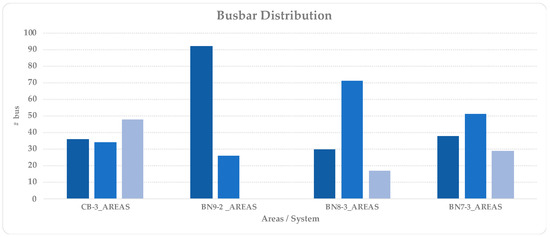 Table 2, Table 3, Table 4 and Table 5 present the results of the system partition process for each case. The physical configuration was not the same as the BNs do not turn out to be the same, even though the number of subsystems into which a system is divided is the same. As in the case of the 82 and 60 measurements system, the number of areas is the same, but there is a variation in the BN.