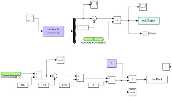 The software MATLAB/Simulink was employed in this study to simplify calculations and generate the system’s time response. A comprehensive Simulink schematic is presented in Figure 9.
