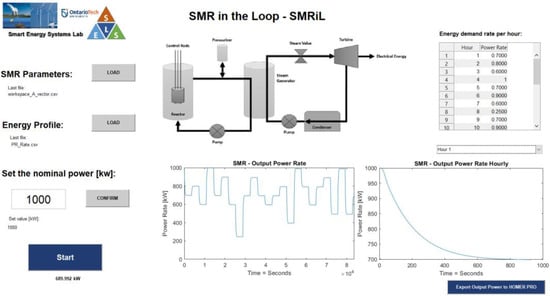 An energy generation profile from a nuclear reactor was generated by developing a user interface, which can be used to conduct experiments with renewable sources. Figure 12 demonstrates that the interface enables the user to input the nuclear reactor parameters, along with the load profile, which can be used to configure the load-following parameters in the control center of the nuclear power plant.