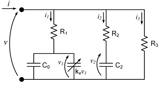 From Figure 1, the two-branch model is analyzed using conventional circuit analysis techniques. By following [9], the assumption R1 = 0 is made, which is reasonable for a DLC [9,15]. Moreover, R3 is assumed known, since this parameter, which is the leakage resistance, is not difficult to find experimentally by using a discharge test without any external load [9]. Moreover, the attempt to retrieve it by using this approach, although theoretically possible, gives rise to an ill-conditioned problem.