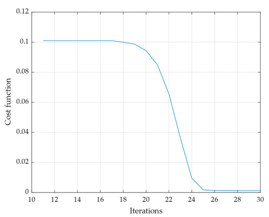 Finally, Figure 8 shows the error of the cost function as well as its fast convergence to zero just within 26 iterations by using CMM. These 26 iterations take a total of 15 s.