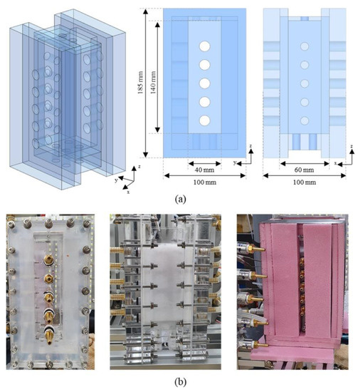 Rectangular LHTES system with bubble injection by Choi et al. (Copyright 2021 Elsevier) [76]. (a) 3D modeling image of test cell; (b) photo image of constructed test cell.