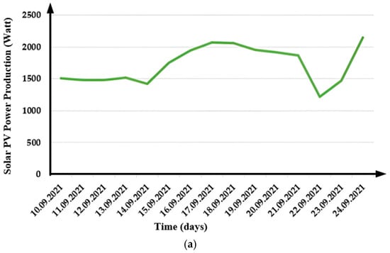The production data of the three solar systems installed were recorded for 15 days. The recordings were taken daily and simultaneously at the same time each day. The data relating to the records received are shown in Figure 6 and Figure 7.