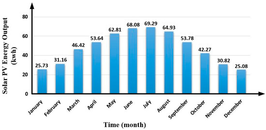 Monthly energy output from the fixed-angle PV system.