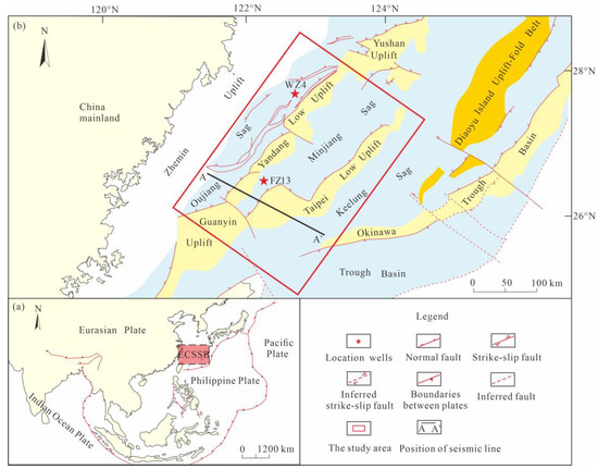 - Yang, C.; Yang, C.; Li, G.; Liao, J.; Gong, J. Mesozoic tectonic evolution and prototype basin characters in the southern east china sea shelf basin. Mar. Geol. Quat. Geol. 2012, 32, 105–112. [Google Scholar] [CrossRef]