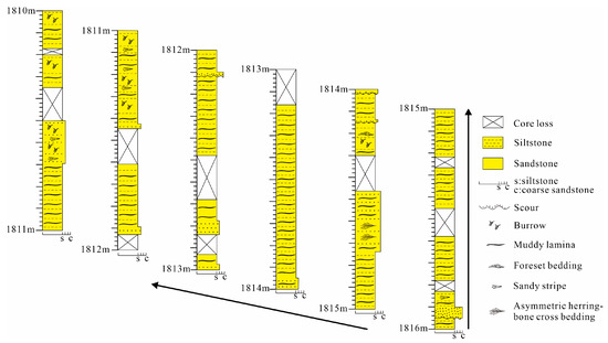 - Kreisa, R.D.; Moila, R.J. Sigmoidal tidal bundles and other tide-generated sedimentary structures of the Curtis Formation, Utah. GSA Bull. 1986, 97, 381. [Google Scholar] [CrossRef]