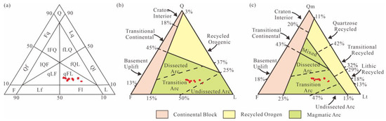- Dickinson, W.R.; Beard, L.S.; Brakenridge, G.R.; Erjavec, J.L.; Ferguson, R.C.; Inman, K.F.; Knepp, R.A.; Lindberg, F.A.; Ryberg, P.T. Provenance of North-American Phanerozoic sandstones in relation to tectonic setting. GSA Bull. 1983, 94, 222–235. [Google Scholar] [CrossRef]