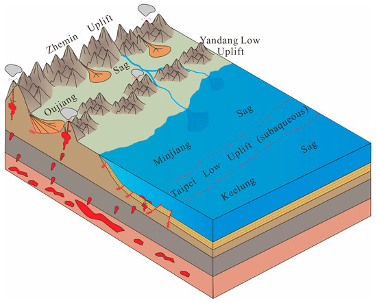 - Zhang, J.; Wang, J. Formation and evolution of the Minjiang Sag. Mar. Geol. Front. 2016, 32, 24–29, (In Chinese with English Abstract). [Google Scholar]