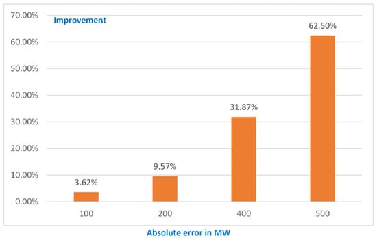 In terms of the absolute error for the testing data set, a yearly average of 76.2 MW is attained, with its standard deviation being 81.8 MW, which means that the forecast error is less than 158 MW for most of the hours in 2016 (8784 h as it was a leap year). The absolute error duration curve is hosted in Table 5. This curve depicts the percentage of hours of the year in which the absolute value of the forecast error is greater than the values given in the first row. It becomes evident that DBD-FELF performs very efficiently since, for nearly 69.5% and 92% of the time, the forecast error is less than 100 and 200 MW, respectively. Moreover, the forecast error exceeds 500 MW for 15 h throughout the year. It should be noted that 9 out of these 15 h belong to Orthodox Easter and Assumption days, which are highly irregular days, as will be discussed in the sequel.