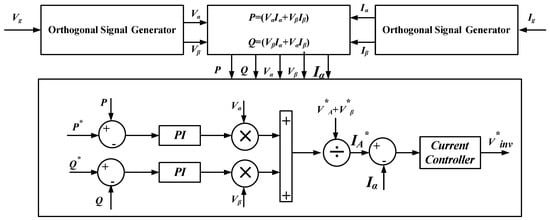 Proposed control block diagram of the system based on PQ theory and the OSG concept.