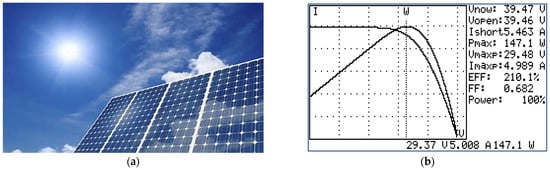 Figure 15 shows the PV panel used in this work, with no load and in operating temperature conditions ranging from 25 °C to 35 °C; the solar irradiance is between 970 W/m2 and 800 W/m2.