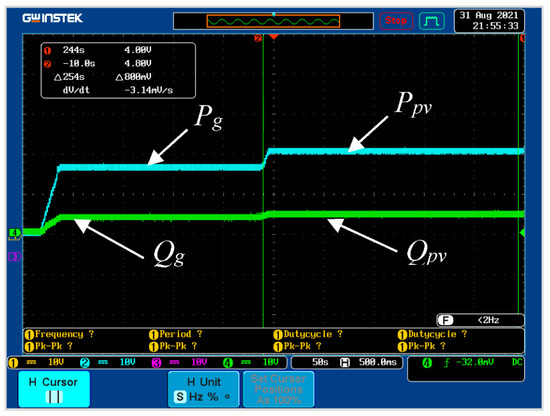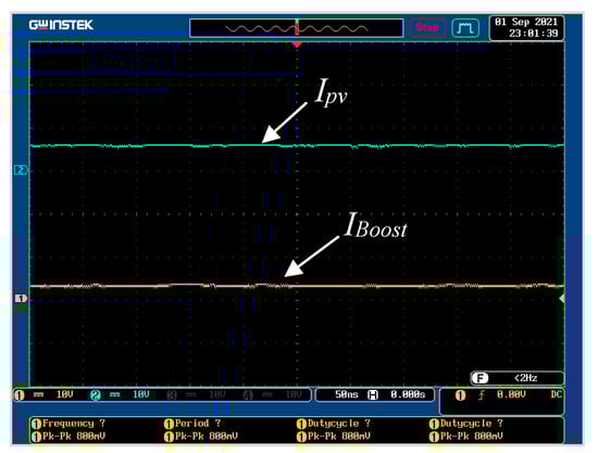 As can be seen in Figure 17 and Figure 18, the converter reacts to the load by decreasing the current from 12.3 A to 5.65 A. The power remains constant at 1030 W for the input and output of the boost converter. This demonstrates that the proposed control system presents a good dynamic response in both grid-connected and islanded modes.