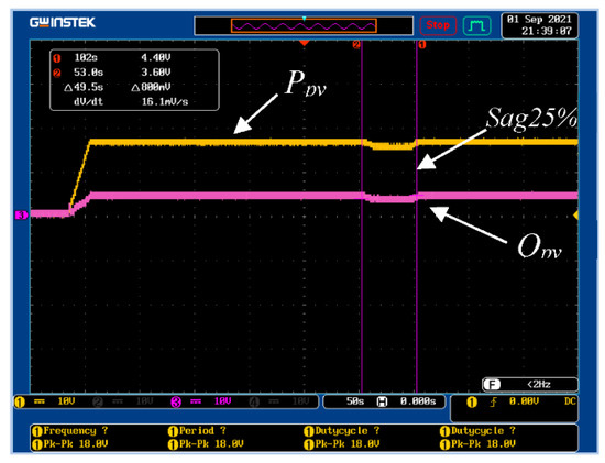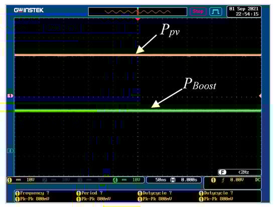 Initially, the boost converter and MPPT controller were designed and tested with linear and non-linear loads for an input voltage of around 200 V and an output voltage of 400 V. Figure 16a shows the experimental results of the PV voltage (185 V) and output voltage (330 V) of the boost converter. As shown in Figure 16b, the duty cycle has a value of 0.7.