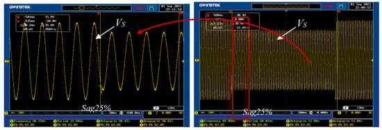 In recent years, power quality (PQ) has become a real problem for both utility providers and consumers due to the widespread interconnection of power-electronic-based nonlinear loads to the electricity distribution grid. Voltage sags and swells are among the most common PQ issues affecting consumers’ critical loads [1,2,3,4]. A voltage sag is defined as a drop in the AC voltage’s RMS value at a power frequency of 0.5 cycles per minute, according to IEEE 1346 [5] and IEEE 1159 [5,6,7] standards. It can also be defined as a rapid drop and simultaneous fast recovery in the voltage at any point of the electrical system according to the standard IEC 61000-2-1 [8]. Voltage sags are often caused by short-circuit faults such as single line-to-ground faults due to the sudden interconnection of a large load such as an industrial induction motor. A voltage swell is described by the IEEE standards as a rise in the RMS value of the supply voltage from 1.1 p.u. to 1.8 p.u. of the nominal voltage during a period from 0.5 s to one minute. The interconnection of large capacitors or the disconnection of large loads are the two primary sources of voltage surges. As a result, some of the industrial equipment, such as motor drives, surge arresters, and relays, may be overheated, tripped, or even damaged by voltage surges [8,9], whereas, for sensitive loads such as electronic equipment, harmonic pollution is of major concern because its regulation is based on the crossings of the zero or maximum value point of the supply voltage [3,4,5,6,7].
