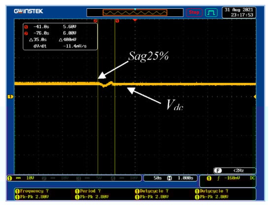 The proposed system is assessed under fault conditions, in the presence of a sag applied at t = 0.1 and cleared at t = 0.2 s. The results are shown in Figure 12.