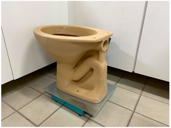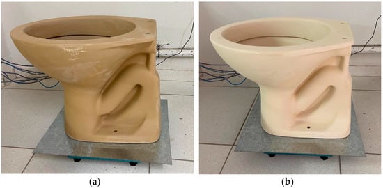 The materials used in the oven drying experiments were conventional sanitary toilets (Figure 1), which were kindly provided by the partner company DEXCO S.A (João Pessoa, Brazil). The main dimensions of the part after removal from the mold and before the start of the drying experiments were as follows: