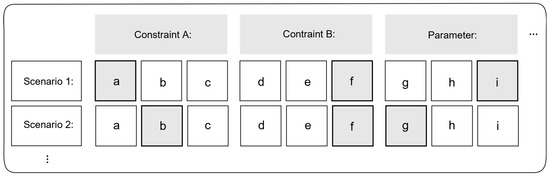Scenario planning is used to explore different possible futures and uncertainties, rather than for making a single outcome prediction [43]. The impact of uncertainties on scenario planning may be reduced if the scenarios are formulated based on discussions with energy planning-related stakeholders rather than on assumptions by the modelers alone [44]; this is one of the novelties of our study. Municipality energy scenarios are formulated in Step 3 in a participatory approach through various types of contact, e.g., interviews, workshops, and email communications, based on a provided outline. The outline offers stakeholders the basis for possible scenarios in the form of various options based on communication with them, i.e., constraints that should be binding in the model, different settings of the model parameter values, and the option to select and combine different elements in order to formulate scenarios (see Figure 3).