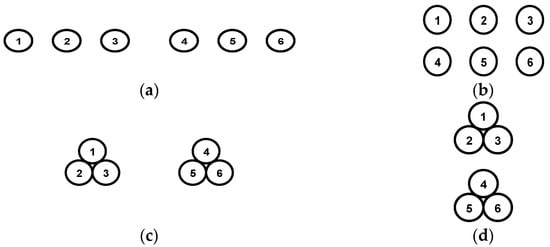 The arrangement of parallel cable is a key factor influencing the current distribution of cables and the circulating current of metal sheaths. Two common formations are introduced in IEEE Standard 575, i.e., the flat horizontal formation and the triangular formation. In terms of the cables connected in parallel, four typical arrangements are considered in this paper, and their structures are depicted in Figure 3.