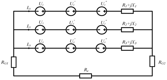 and are sheath circulating current of three phases, respectively, and is the grounding resistance. Substituting Equation (9) into Equation (6) will yield six equations, and their matrix form is depicted as