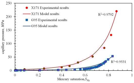 Comparison of the proposed model’s results and the pressure-controlled porosimetry data.