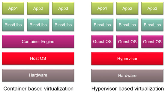 - Eder, M. Hypervisor-vs. Container-Based Virtualization. Chair for Network Architectures and Services, Department of Computer Science, Technische Universität München. 2016. Available online: https://search.datacite.org/works/10.2313/net-2016-07-1_01 (accessed on 2 April 2023). [CrossRef]