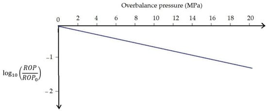where a 4 is the overbalance exponent. The above-mentioned equations are beneficial to investigate the influence of the mud density on the ROP. Thus, Equation (6) is rewritten as: