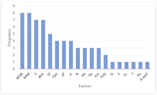 Figure 7. The frequency of different factors used in empirical ROP models.