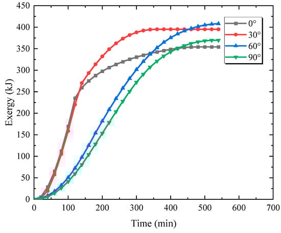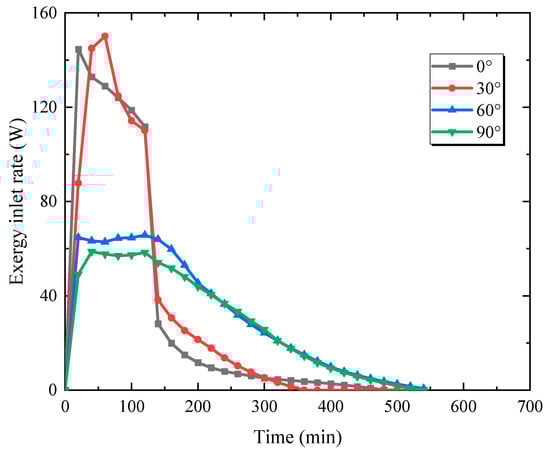 Exergy inlet rate for different inclination angles.