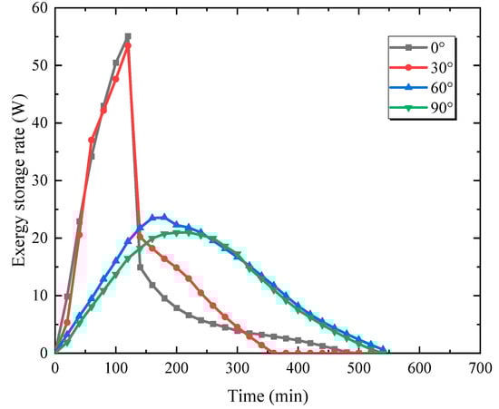 Exergy storage rate for different inclination angles.