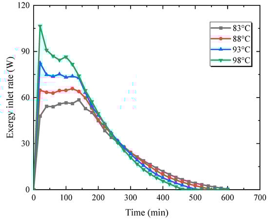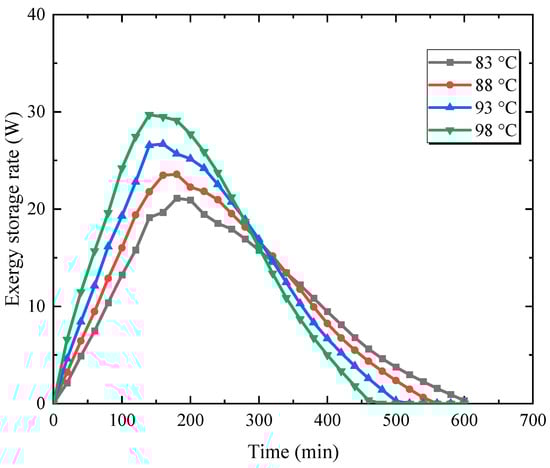 Exergy storage rate for different inlet water temperatures.