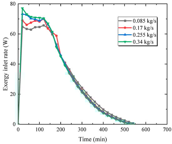 Exergy inlet rate for different inlet flow rates.