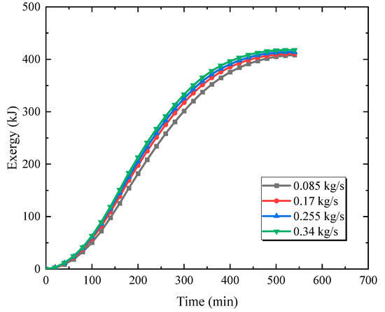 Exergy for different inlet flow rates.