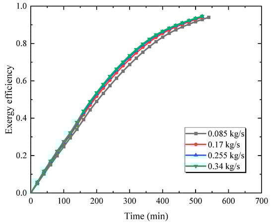 Exergy efficiency for different inlet flow rates.