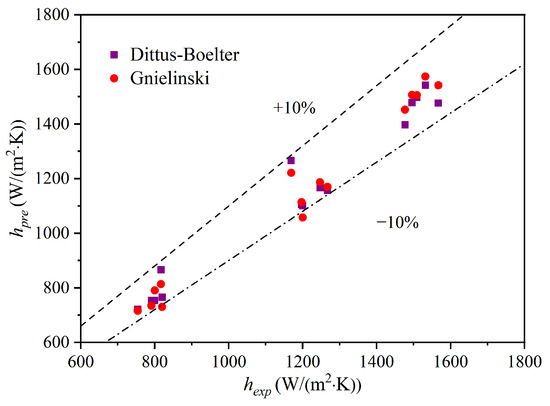 The theory of single-phase flow and heat transfer was relatively mature, and there were generally accepted and applicable correlations. The comparative correlations selected in this study comprised the Dittus–Boelter [29] correlation and the Geielinski [30] correlation.