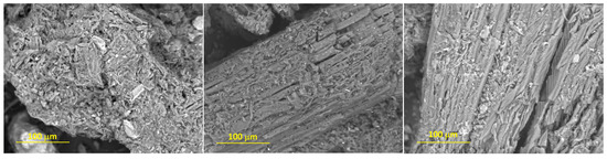 All the materials were examined by SEM with EDX using a Leo Supra 50VP scanning electron microscope under a low vacuum in a nitrogen atmosphere. EDX data were collected using an energy-dispersive spectrometer INCA Energy (Oxford Instruments, X-Max-80, Abingdon, UK).