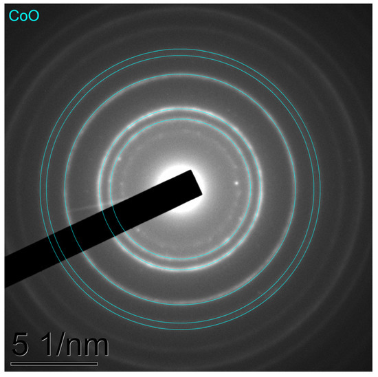 Electron diffraction patterns obtained via TEM examinations of the 3K-CoL sample after the heating at 300 °C in a CO2 flow.