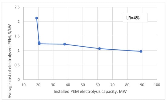 The purpose of this paper is a forecast of future green hydrogen costs based on the learning curves approach. The research hypothesis is based on scientific data that suggest that the basis for the future development of green energy is hydrogen energy based on renewable energy sources (RES). As the total installed hydrogen production capacity increases, experience accumulates in both the construction of production facilities and hydrogen production. Growing experience leads to impressive cost reductions. The observed relationship between these cost savings and experience gained during deployment is commonly referred to as “learning by doing” [9,10,11]. Therefore, the objective of this study is to calculate component-by-component learning curves to predict the prospects for reducing the cost of hydrogen production.