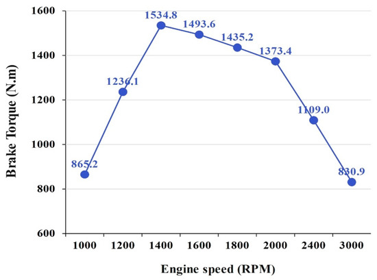 Brake torque (N·m) vs. engine speed (RPM) curve.