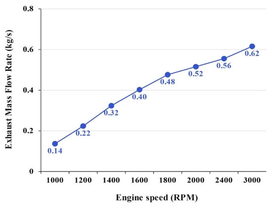 Exhaust mass flow rate (kg/s) vs. engine speed (RPM).
