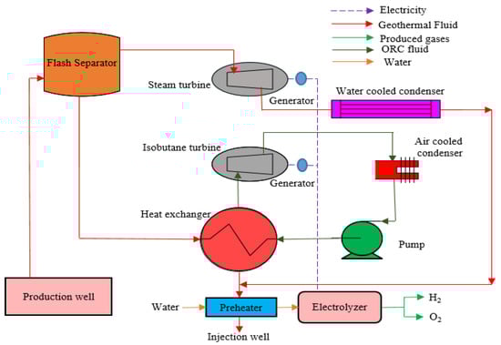 - Yilmaz, C.; Kanoglu, M.; Abusoglu, A. Exergetic cost evaluation of hydrogen production powered by combined flash-binary geothermal power plant. Int. J. Hydrogen Energy 2015, 40, 14021–14030. [Google Scholar] [CrossRef]