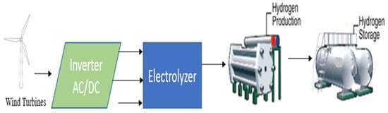 Hydrogen production from wind energy is another clean RSE source. Compared to other energy sources, it has the least negative environmental impact [107]. Wind energy fluctuates due to weather factors [108], which increases the demand for load frequency control in balancing power. A water electrolysis-based wind-to-hydrogen (WTH) technique could solve such challenges. The excess electricity is stored as hydrogen, which can be converted back to electricity when system congestion is relieved, or wind potential is low [109]. For both isolated [110] and connected grid systems [111], electrolytic hydrogen was investigated as a potential storage medium in networking balancing for wind power. Furthermore, the wind-to-hydrogen system has much potential for use as a clean fuel in light-duty cars to help reduce GHG emissions. Figure 12 shows the hydrogen and electricity generation from wind power [112]. The cost of hydrogen produced from wind power is higher than hydrogen produced from non-renewable fuels. This was investigated by Gregor et al. [113] by performing a life cycle assessment (LCA) study of electricity and hydrogen production from solar and wind technologies as renewable sources and hydrogen production from non-renewable fuels such as gasoline and natural gas. There are two factors which are attributed to the high cost of hydrogen production from wind energy: (1) energy losses as a result of inefficiencies in the processes of energy conversion (2) and the new equipment installation cost. Furthermore, when the efficiency of a hydrogen fuel cell vehicle is two times that of an internal combustion vehicle, wind to hydrogen for hydrogen fuel cell vehicles rather than gasoline may result an economically viable GHG emissions mitigation [114]. Table 4 shows the efficiency and cost of hydrogen production from various renewable processes [115,116,117,118].