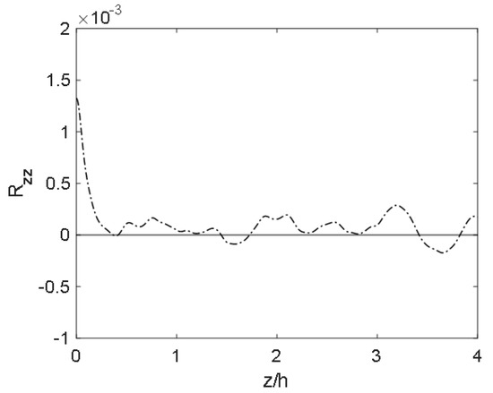 Figure 8 shows the two−point correlation along a line in the middle of the annulus from the annular duct’s inlet to its exit with one probe at the inlet. From this figure, it can be seen that the two-point correlation acquired from the second probe falls off to zero at less than half of the duct length. Thus, the length, is sufficient to implement periodic boundary conditions for the incompressible fully developed flow in the annular duct.