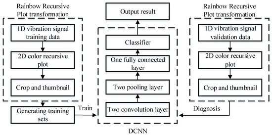 The flow of the rotary machinery fault diagnosis method based on RRP-DCNN provided in this article is shown in Figure 5.