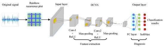 The architecture of the rotating machinery fault diagnosis method based on RRP-DCNN proposed in this article is shown in Figure 3.