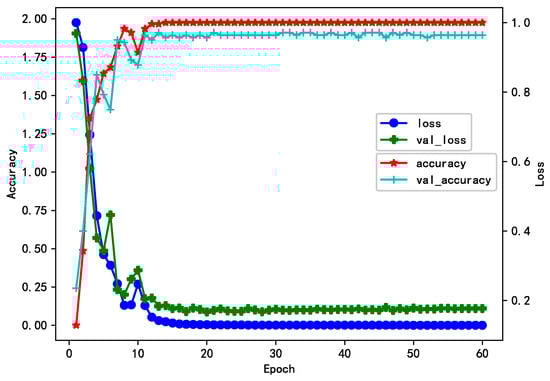 In feature extraction and fault identification of the rotary machinery vibration signal using DCNN, the main parameters affecting the performance of the model are: CNN structure design, epoch, optimizer selection, learning rate and dropout. The structure of the DCNN has been introduced in Section 3.3. In the training stage, the upper limit of training times epoch is set to 60, the learning rate is set to 0.001, dropout is used in the full connection layer to suppress over fitting, and the dropout rate is set to 0.25. In the test phase, the dropout rate is set to 0 to ensure the diagnosis effect. The Adam algorithm is selected as the optimizer.